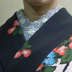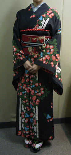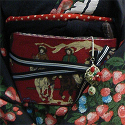 帯揚げ:赤の水玉は、着物と同じ生地、黒は絹ちりめんの帯揚げ