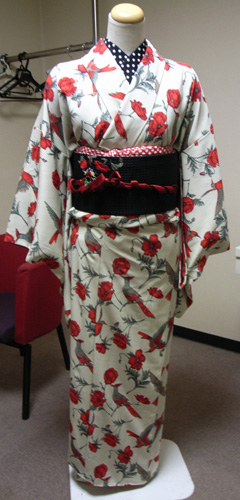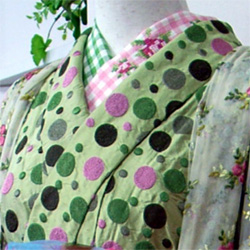 着物:ポリエステルの洋服地、でもこんな柄の洋服きている人もみたことない。。